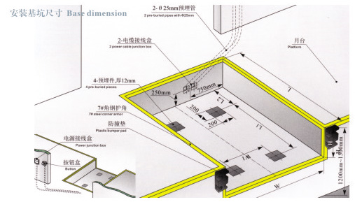 預(yù)埋管在地坑外的走向,由客戶視按鈕安裝位置,動(dòng)力電源接線盒位置決定管路走向。